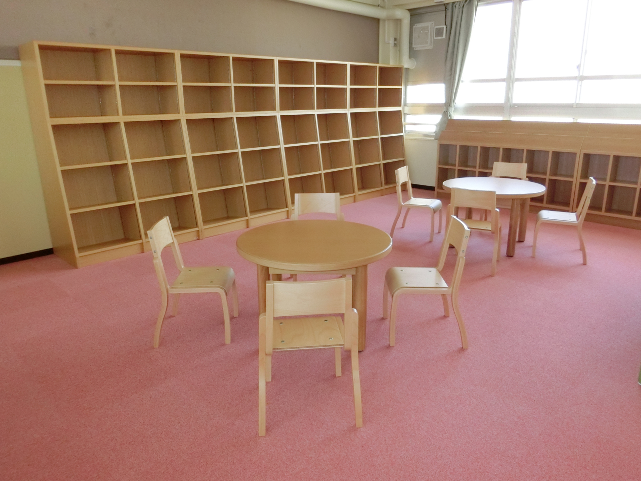 *児童用の高さの書架とテーブル・椅子を揃えました。